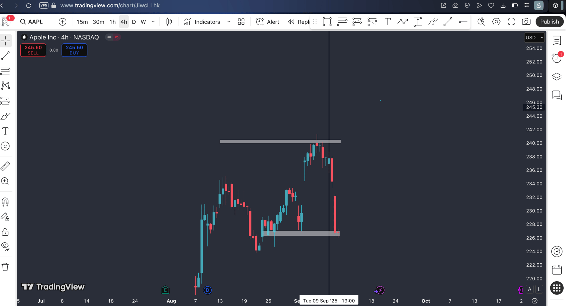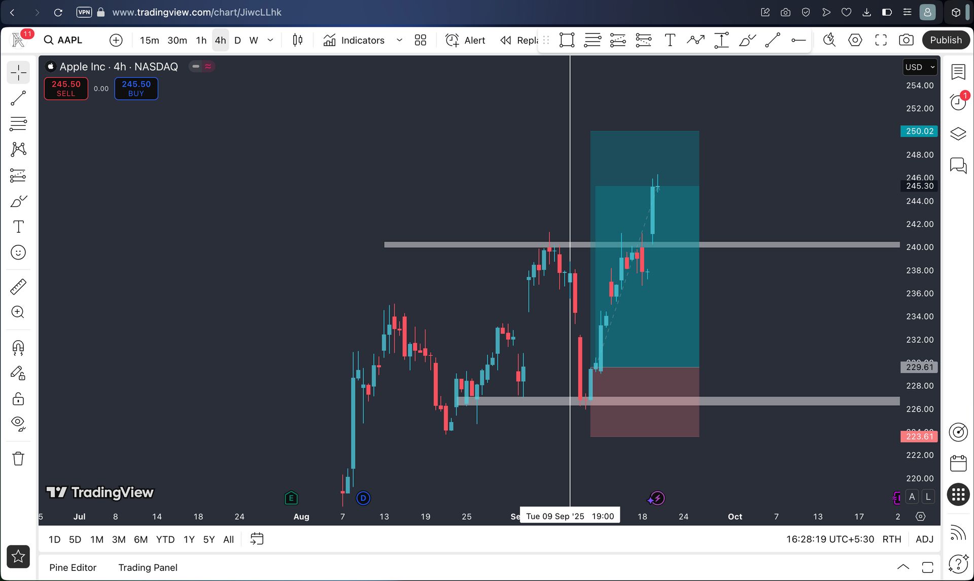 So with the help of my technical skill, I spotted support on 4H Timeframe and exactly from that level Apple got rejection and after a Bullish candle confirmation I executed my Trade on the Apple stock.