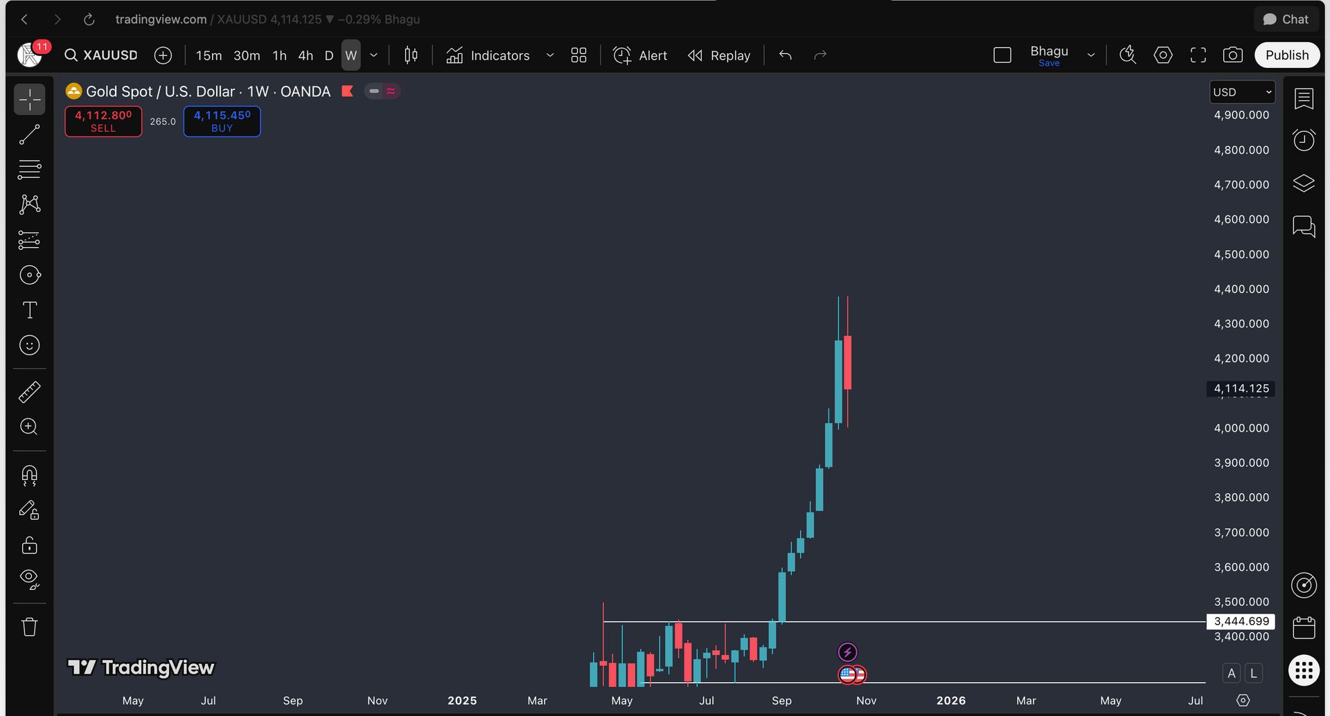 📈 Chart 2: Gold 1W Timeframe